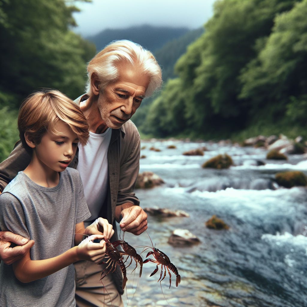 When I was a boy, you would take me to catch crayfish on Saturday mornings. We would slog through murky waters along the river's edge, and you would shout at me in your thick Finnish accent, "Don't let it go!" The crayfish always evaded my clumsy fingers, but never yours. In an instant, you could capture one with ease. I always dreamed of being as skilled as you, Grandpa.